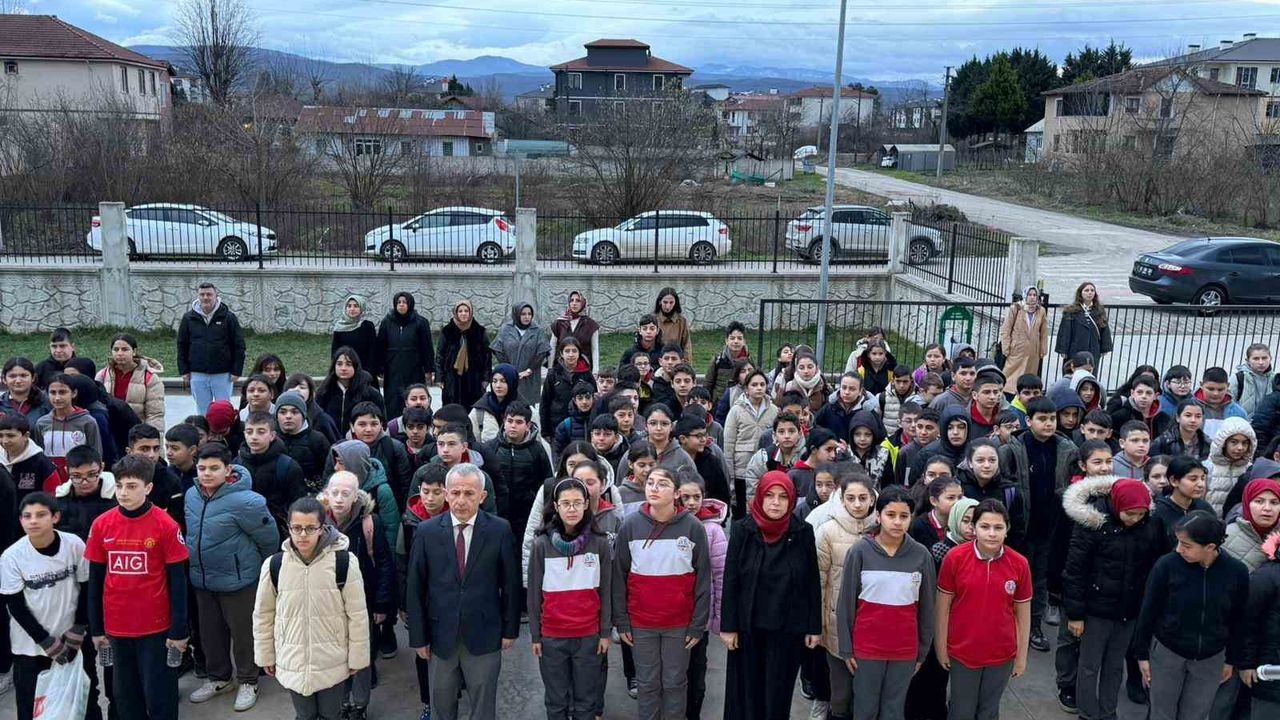 DÜZCE(İHA) - Düzce'de 6 Şubat depremlerinin yıl dönümünde, hayatını kaybedenleri anmak amacıyla okullarda ilk ders öncesinde bir dakikalık saygı duruşu gerçekleştirildi.
