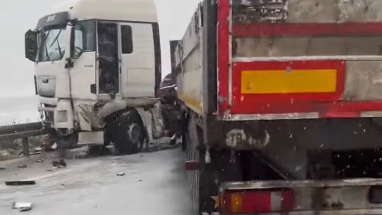 Düzce'nin Akçakoca ilçesinde bir tırın makaslaması nedeniyle Kalkın Plajı mevkisindeki çevre yolunda ulaşım aksadı, küçük araçlar güvenlik şeridinden kontrollü olarak ilerleyebiliyor.
