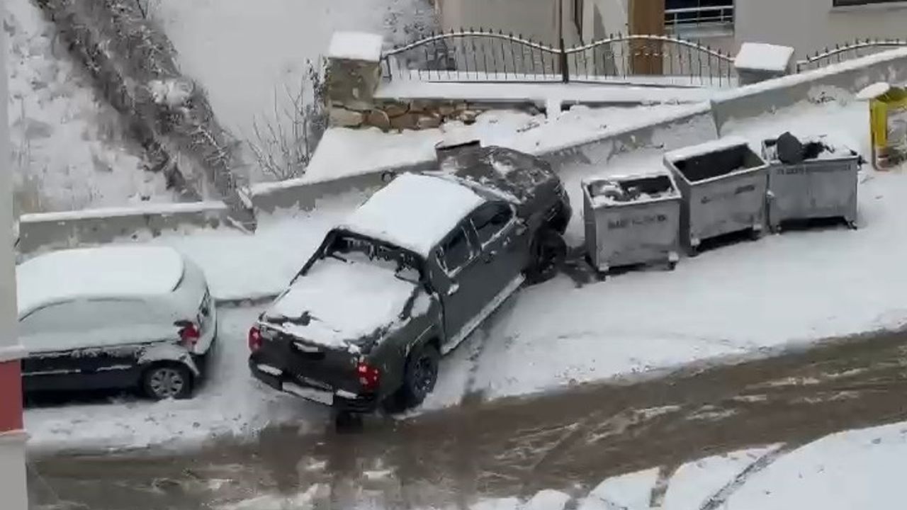 Elazığ'da kar yağışı sonrası kayganlaşan yollarda kayan araçlar vatandaşların cep telefonu kamerasına yansıdı.