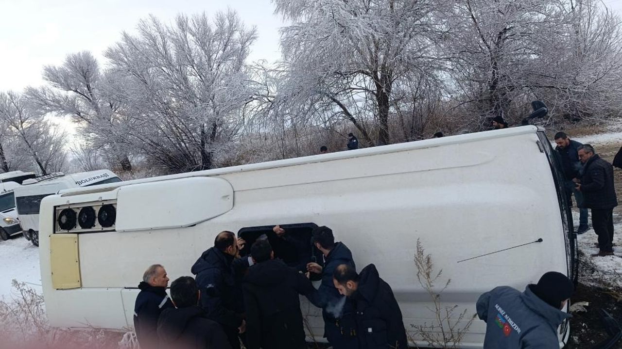 Kahramanmaraş'ta Elbistan-Çoğulhan karayolunda işçi taşıyan servis aracı, kaygan zemin nedeniyle kontrolden çıkarak devrildi. Kazada şans eseri yaralanan olmazken, araçta maddi hasar meydana geldi.