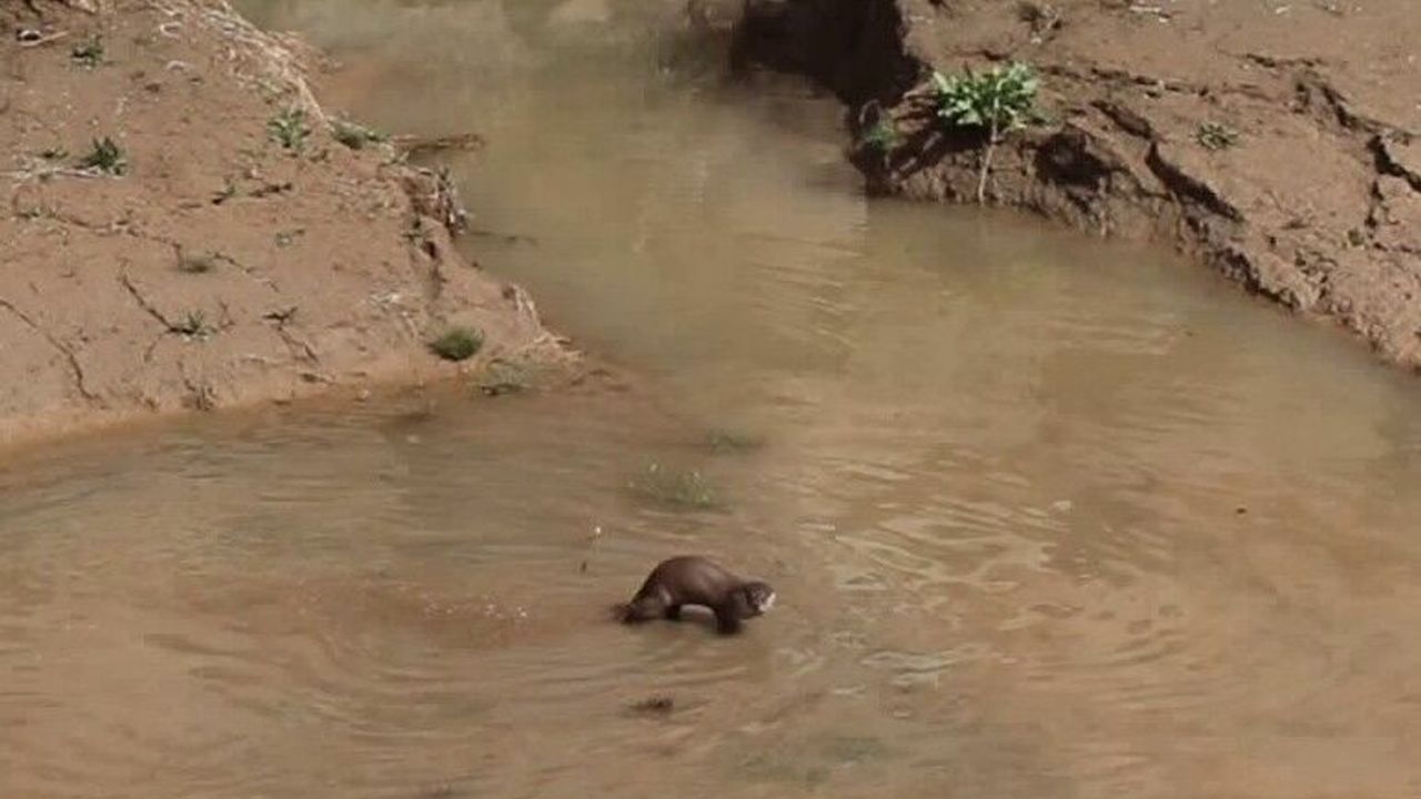 Nesli tehdt altındaki su samuru, Erzurum'un Olur ilçesi Ormanağzı köyünde görüntülendi.