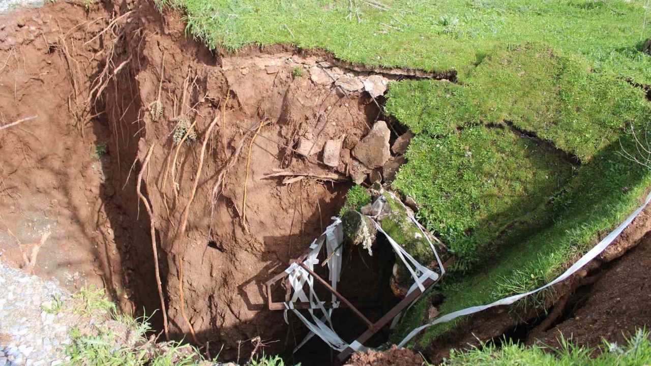 Aydın'ın Efeler ilçesinde etkili olan yağışların ardından eski su kuyusunun bulunduğu yol çökerken, 20 metre derinliğinde obruk oluştu.