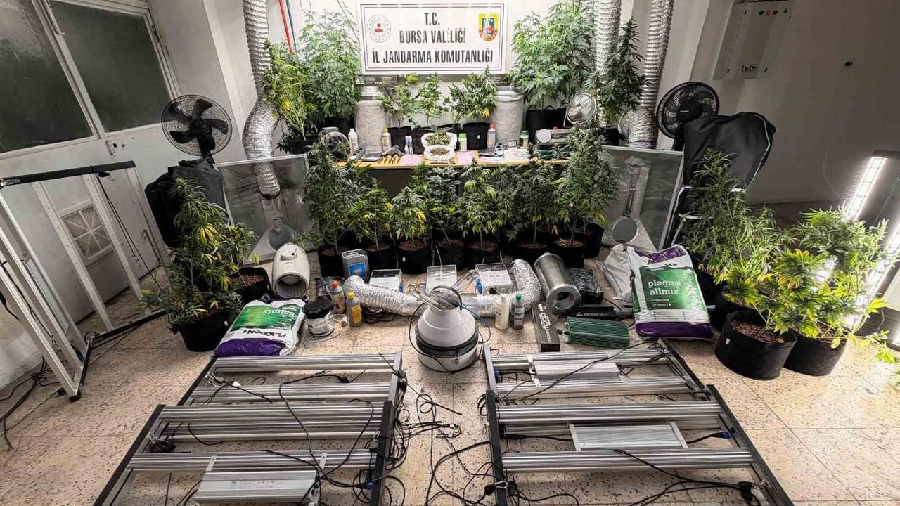 Nilüfer ilçesinde uyuşturucu imalathanesine çevrilen bir evde 4 parça halinde 755 gram kubar esrar, 27 kök skunk bitkisi, 4 kök kenevir bitkisi, 4 adet iklimlendirme sistemi, 1 adet pres makinesi, çok sayıda şeffaf poşet ve kilitli şeffaf poşet ele geçirldi. Bir kişi gözaltına alınırken, şahsın sorgusunun ardından adliyeye sevk edileceği öğrenildi