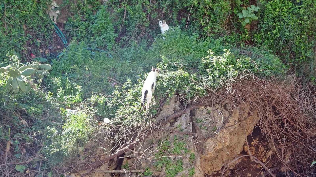 Antalya'da 30 metrelik falezlerin uçurum kısmına çıkan kediler, çevredeki vatandaşları tedirgin etti. Mahsur kaldıkları ihbar edilen kediler, itfaiye erleri kurtarma operasyonuna hazırlanırken herhangi bir yardım olmadan güvenli alana çıktı.
