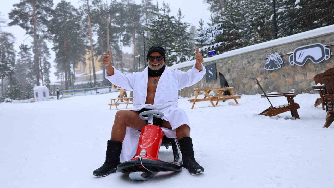 Kendisine tatil için Kristal karlar diyarı Sarıkamış Sarpino Mountain Otel'i seçen Fedon burada kayağın ve karın keyfini çıkarıyor.