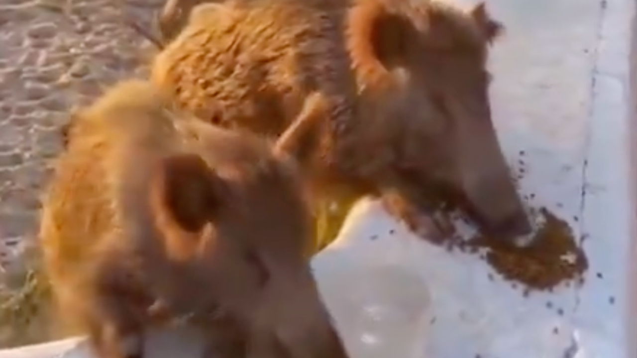 Kuşadası’nda son günlerde sürü halinde sahil bölgelerinde görülen yaban domuzları, vatandaşların sokak hayvanları için bıraktığı köpek mamalarıyla beslenmeye başladı.