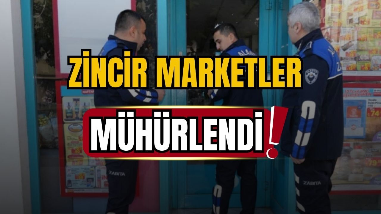 Alanya Belediyesi Encümeni’nin aldığı karar doğrultusunda iki market şubesi mühürlenerek üç gün süreyle ticari faaliyetleri durduruldu.