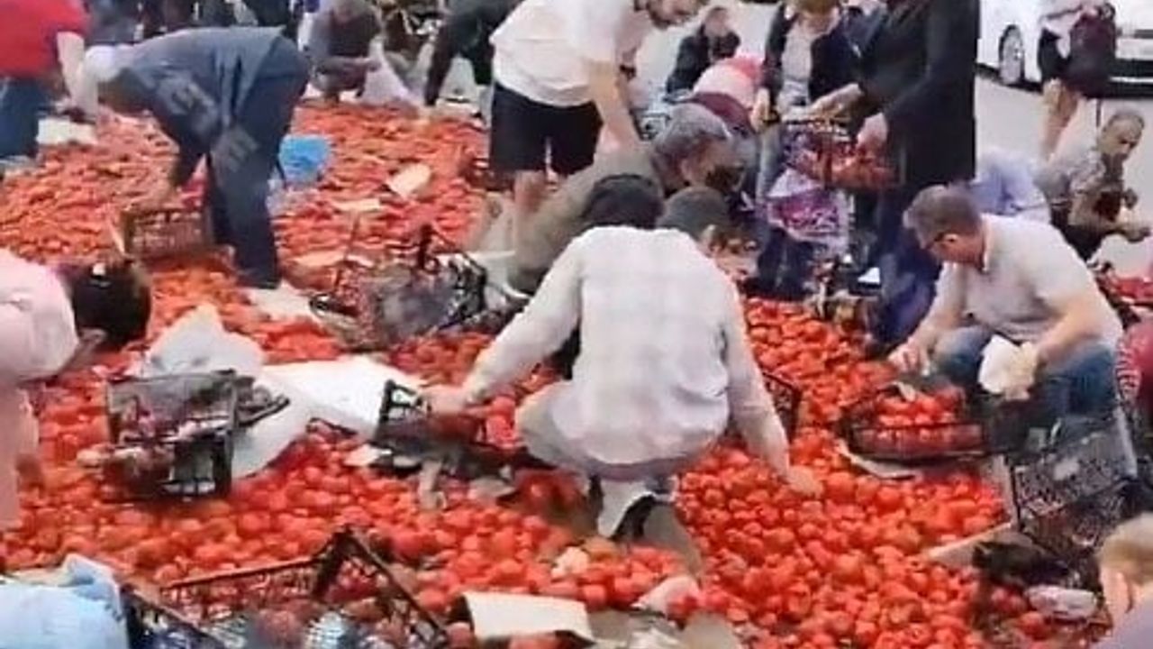 Kaza sonrasında çevredeki vatandaşların domatesleri yerden toplayarak evlerine götürmeleri dikkat çekti.