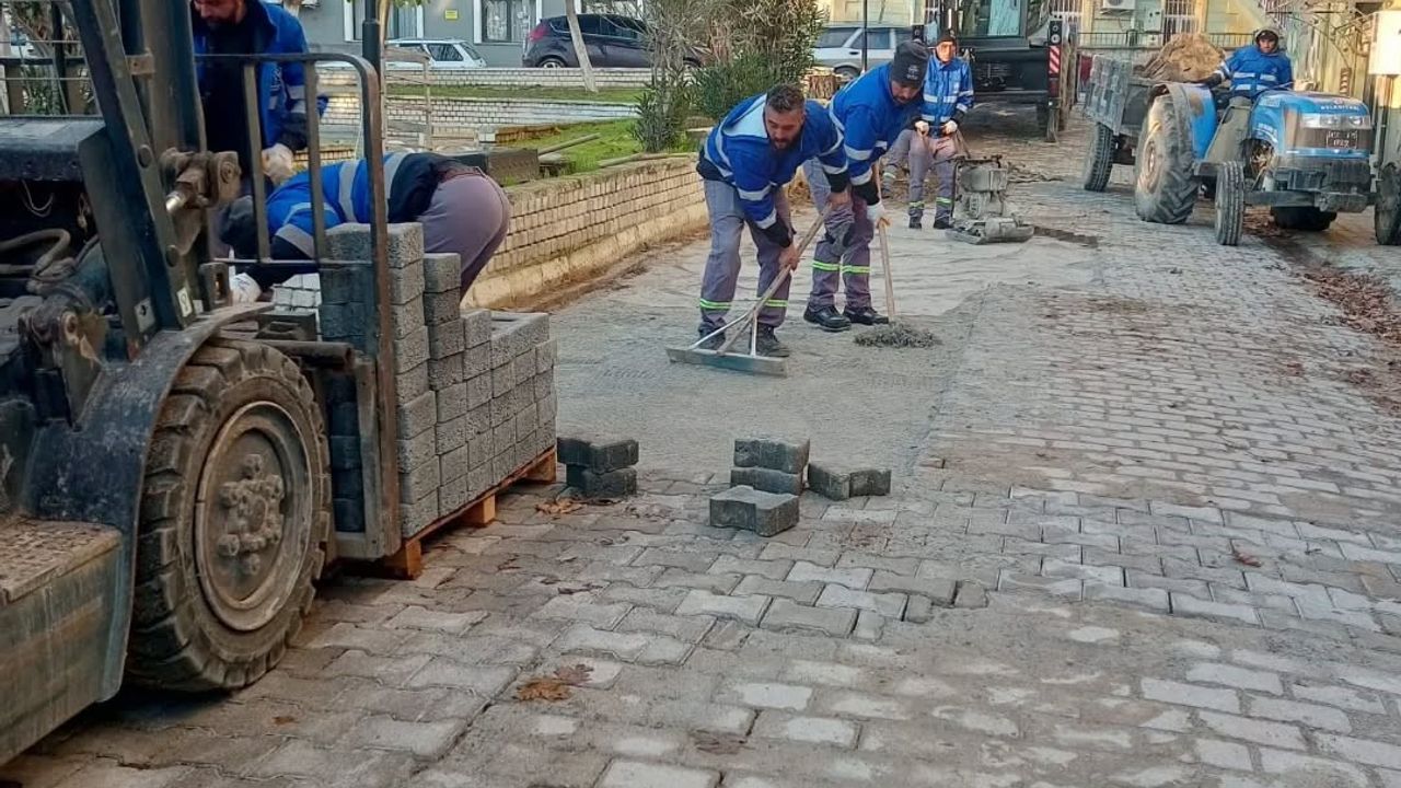Aydın'ın Germencik ilçesinde saha çalışmalarını sürdüren belediye ekipleri, bozulan zeminlerin onarımını ve parke taşı tamiratı çalışmaları gerçekleştirdi.