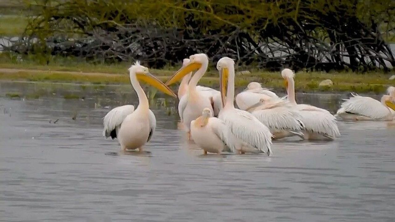 Göç eden pelikanlar, Bursa'nın İnegöl ilçesinde bulunan Boğazköy Barajı'nda mola verdiler.