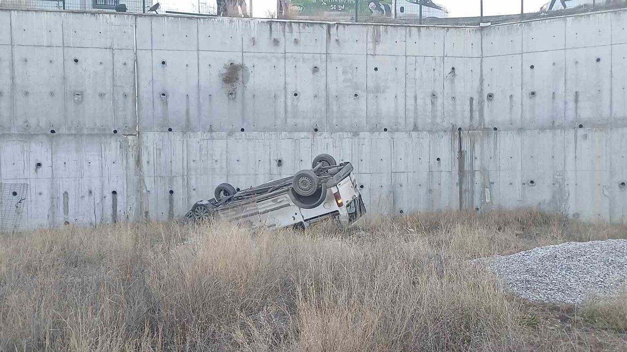 Çorum'da yoldan hafif ticari araç yaklaşık 8 metrelik istinat duvarından aşağı düştü. Kazada sürücü ağır yaralandı.