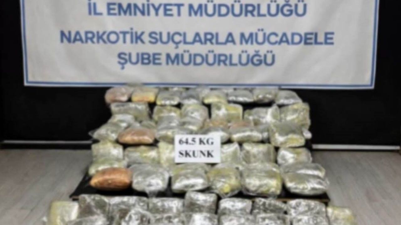 Hakkari Valiliğinden yapılan açıklamada, Narkotik Suçlarla Mücadele Şube Müdürlüğü görevlilerince yürütülen çalışmaların devam ettiği belirtildi. Açıklamada, '18 Nisan 2026 tarihinde uyuşturucu ve uyarıcı madde ticaretinin önlenmesine yönelik yürütülen çalışmalar kapsamında Yüksekova ilçesinde operasyon gerçekleştirildi. Teknik ve fiziki takip sonucu belirlenen adrese düzenlenen operasyonda, şüphelilere ait ikamette yapılan aramada 64,5 kilogram skunk maddesi ele geçirildi. Operasyon kapsamında yakalanan 4 şüpheli şahıs hakkında adli işlemlere başlandı' denildi.