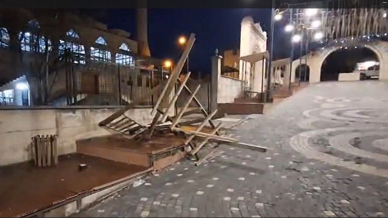 HAKKARİ (İHA) - Hakkari'de Ulu Camii önündeki kamelya ve çeşitli kent mobilyaları, kimliği belirsiz kişi veya kişilerce tahrip edildi.