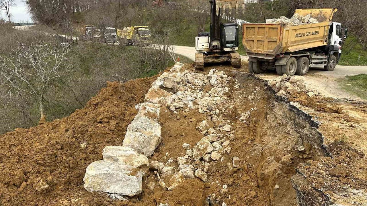 DÜZCE (İHA) - Akçakoca ilçesi Kirazlı köyünde meydana gelen heyelana anında müdahalede bulunuldu.