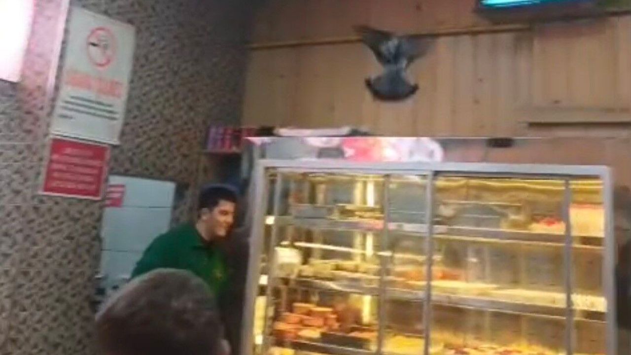 Çamlıca Mahallesi Ulusal Egemenlik Bulvarı'nda iftar vakti tüm masaların dolu olduğu bir lokantaya giren güvercin, adeta ortalığı karıştırdı. Kuş dışarıya çıkabilmek için içeride oradan oraya uçuşurken ilginç anlar ortaya çıktı. Korkan hayvan, lokanta çalışanlarının müdahalesiyle güçlükle dışarıya çıkarıldı. Yaşananlar ise bir vatandaşın cep telefonu kamerası ile kayıt altına alındı.