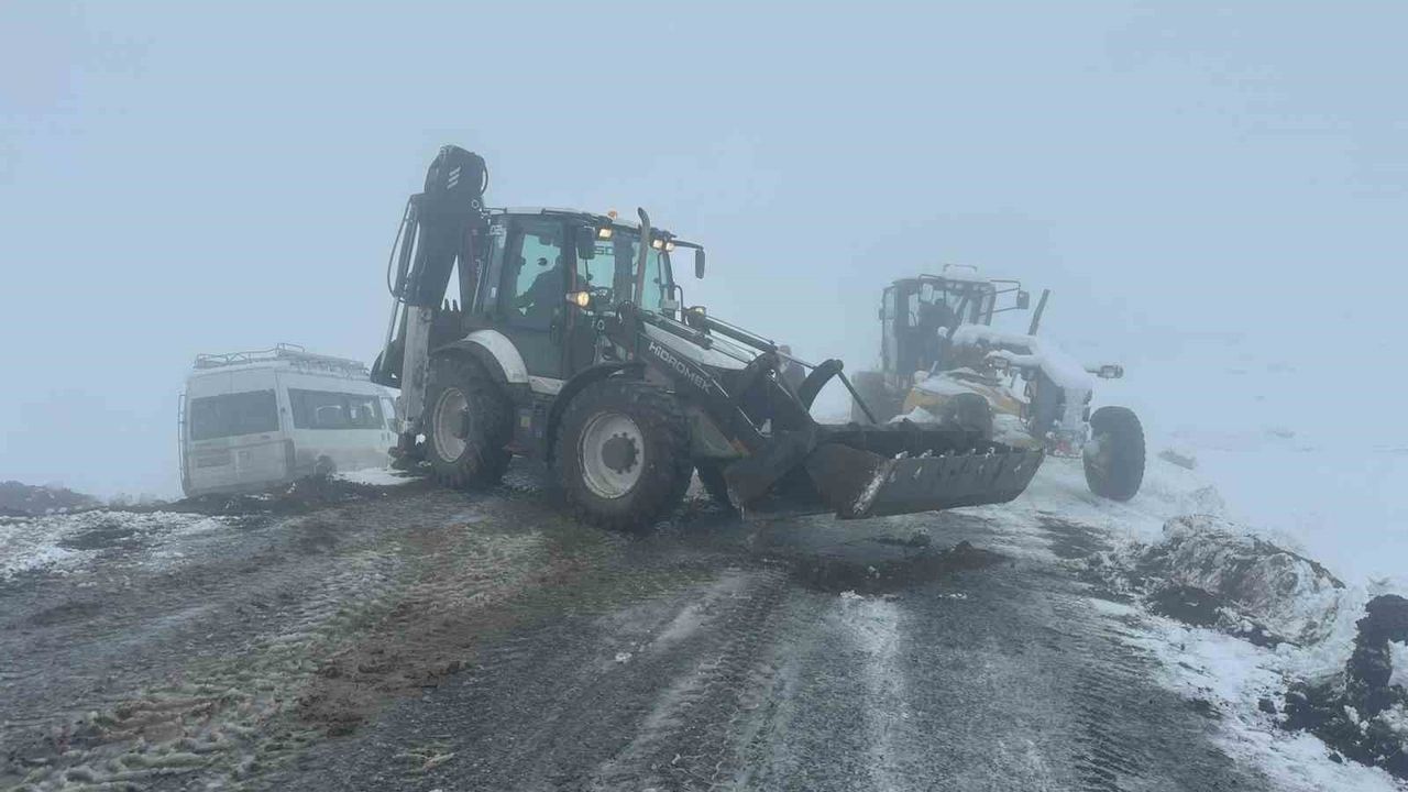 Iğdır'da yoğun kar yağışı sonrası kapanan 57 köy yolu ile toplam 315 kilometrelik hat üzerinde, Iğdır İl Özel İdaresi ekipleri çalışmalarına aralıksız devam ediyor. Ekiplerin sabah saatlerinde yürüttüğü çalışmalar sırasında, Alibeyköy'den Iğdır şehir merkezine gelmeye çalışan bir yolcu minibüsünün, yoğun sis ve kar nedeniyle şarampole devrildiği ihbarı alındı. Olay yerine sevk edilen ekipler, hummalı bir çalışma sonucu minibüsü bulunduğu yerden çıkararak yolu yeniden güvenli hale getirdi. Kazada minibüste bulunan 8 yolcunun sağlık durumlarının iyi olduğu, herhangi bir yaralanma ya da can kaybının yaşanmadığı öğrenildi. Alibeyköy Muhtarı Ali Turgut, yaşanan olayla ilgili yaptığı açıklamada şunları söyledi: 'Alibeyköy'den şehir merkezine doğru gelirken yoğun sis ve kar nedeniyle görüş mesafemiz düştü. Bir anda yolu şaşırdık ve aracımız şarampole yuvarlandı. Çok şükür, araçta bulunan yolcularımızda herhangi bir yaralanma olmadı. Büyük bir kazayı ucuz atlattık. Durumu İl Özel İdaresi'ne bildirdik. Sağ olsunlar, ekipmanları ve kepçeleriyle kısa sürede olay yerine gelerek bizleri bulunduğumuz yerden çıkardılar. Emeği geçen Genel Sekreterimize, ilgili şubelerimize ve tüm ekiplere teşekkür ediyorum.' Yetkililer, vatandaşları olumsuz hava şartlarına karşı dikkatli olmaları ve zorunlu olmadıkça yola çıkmamaları konusunda uyardı.