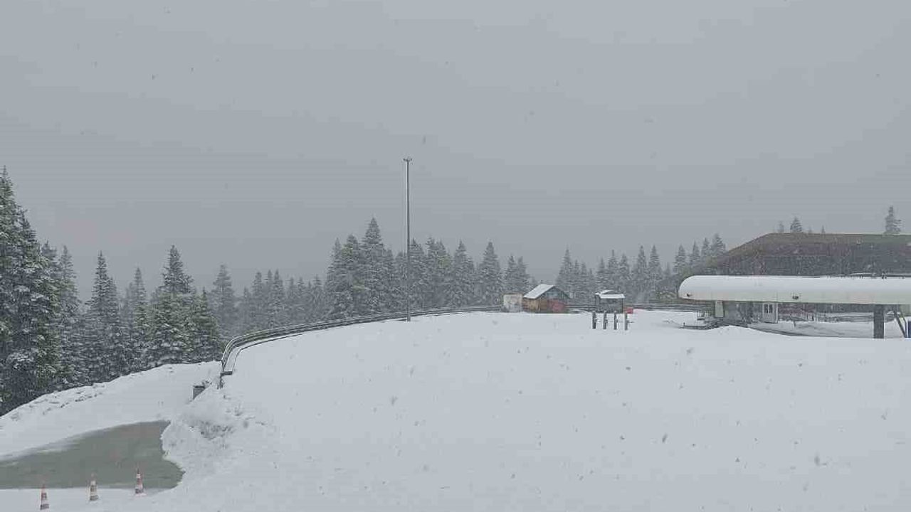 Kastamonu'da, Ilgaz Dağı geçidinde etkili olan kar yağışı, nisan ayının ilk haftasında bölgeyi yeniden beyaza bürüdü.