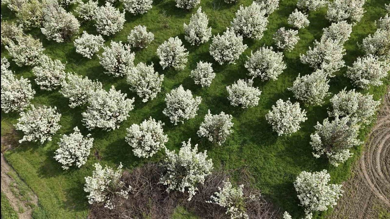 Özellikle kırsal mahallelerde yoğun olarak bulunan meyve bahçeleri, adeta gelinlik giymiş gibi bembeyaz bir örtüye bürünürken, ortaya kartpostallık manzaralar çıktı. Havaların ısınmasıyla birlikte çiçek açan ağaçlar, hem üreticilere yeni sezonun umutlarını yeşertti hem de doğaseverlerin ilgisini çekti.