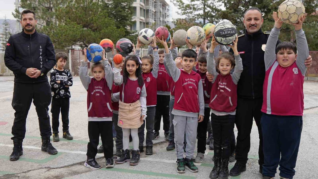 Kırıkkale'de itfaiye ekipleri, bir okulun spor salonunun çatısına kaçan topları merdivenli araçla indirip öğrencilerin yüzünü güldürdü.
