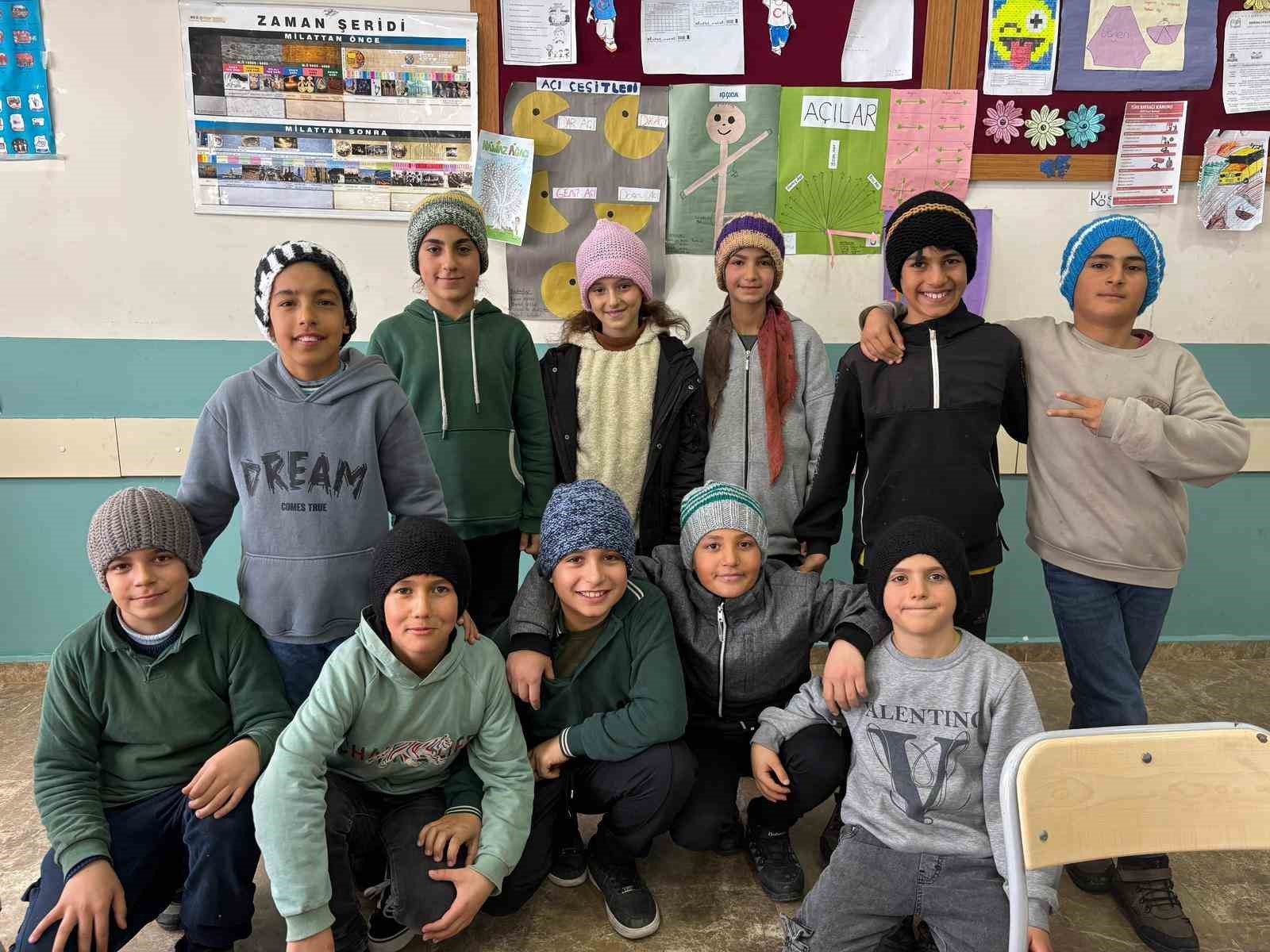 Bir yıldır süren gönül köprüsünün son durağı ise Hasköy Dağdibi İlk ve Ortaokulu oldu. El emeğiyle hazırlanan şapkalar, okulda düzenlenen etkinlikte öğrencilere dağıtılarak büyük mutluluk yaşattı.
