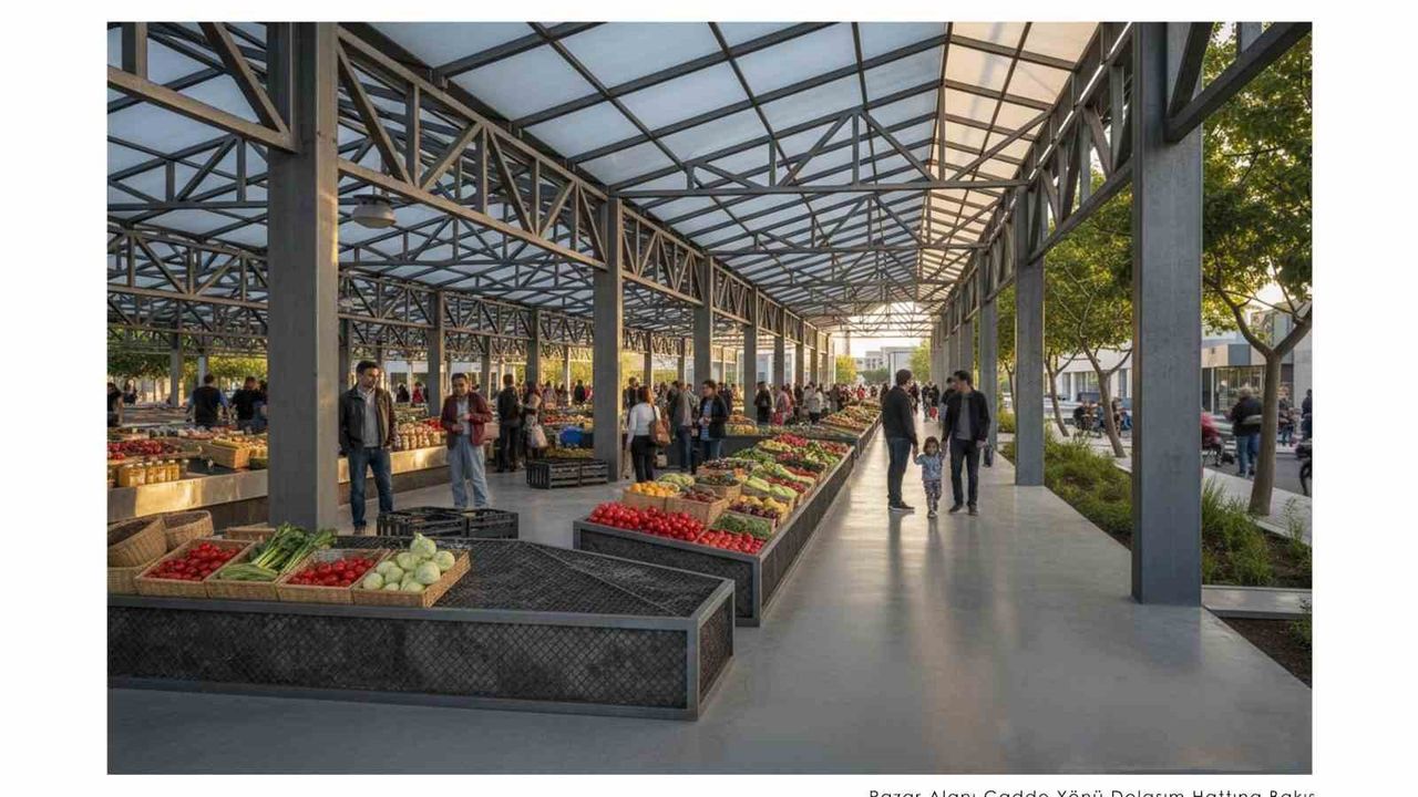 Proje detaylarına göre, yapı toplam 5 bin 700 metrekarelik saçak altı kapalı alana sahip olacak. Çelik konstrüksiyon taşıyıcı sistemle inşa edilecek pazar alanı, yüksek tavanlı ve doğal havalandırmaya imkan veren mimarisiyle ferah ve güvenli bir alışveriş ortamı sunacak şekilde tasarlandı.