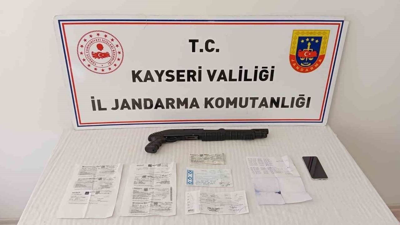 Yeşilhisar Cumhuriyet Başsavcılığı koordinesinde yürütülen soruşturma kapsamında Kayseri İl Jandarma Komutanlığı KOM Şube Müdürlüğü ve Yeşilhisar İlçe Jandarma Komutanlığı tarafından Yeşilhisar ilçesinde şüpheli bir şahsın ikametinde yapılan aramalarda, 1 adet para gönderim notlarının listesinin yazılı olduğu not kağıdı, 1 adet 400 bin TL bedelli senet, 1 adet tarih ve miktarı yazılı olmayan açık senet, 1 adet 2 milyon TL bedelli çek, 1 adet cep telefonu ve sim kartı, 1 adet ruhsatsız pompalı tüfek ele geçirildi.