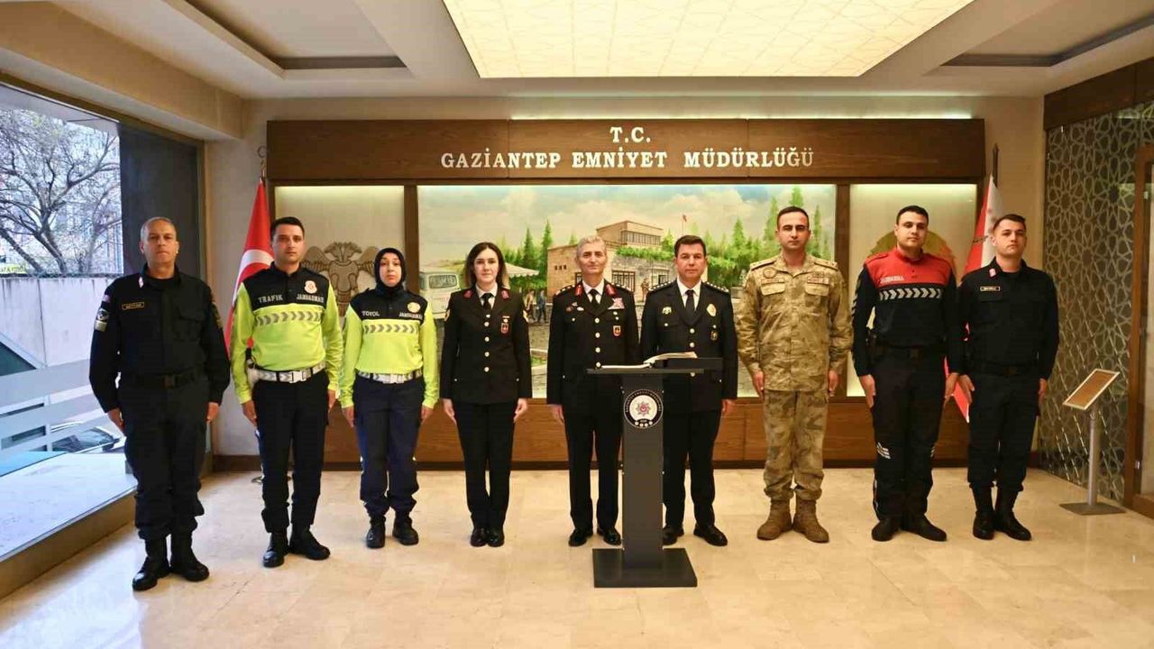 Gaziantep İl Jandarma Komutanı Tümgeneral Halil Şen ve beraberindeki personeli, Türk Polis Teşkilatı'nın 181'inci kuruluş yıl dönümü münasebetiyle Gaziantep İl Emniyet Müdürü Celal Özcan'ı makamında ziyaret etti. Tümgeneral Halil Şen, ziyarette Türk Polis Teşkilatı'nın 181'inci kuruluş yıl dönümünü kutlayarak ülkenin huzur ve güvenliği için omuz omuza görev yapan iki kurumun birlik ve beraberliğine vurgu yaptı.