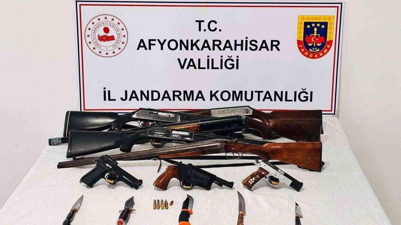 Edinilen bilgilere göre, Afyonkarahisar İl Jandarma Komutanlığı tarafından Sinanpaşa ilçesi Boyalı ve Kayadibi köylerinde alınan istihbarat üzerine farklı adreslere baskın düzenlendi. Baskında arama yapan ekipler ruhsatsız 3 tabanca ile 5 av tüfeği, 5 bıçak ve mermiler ele geçirdi. Olayın ardından 8 şüpheli şahsın gözaltına alındığı bildirildi.
