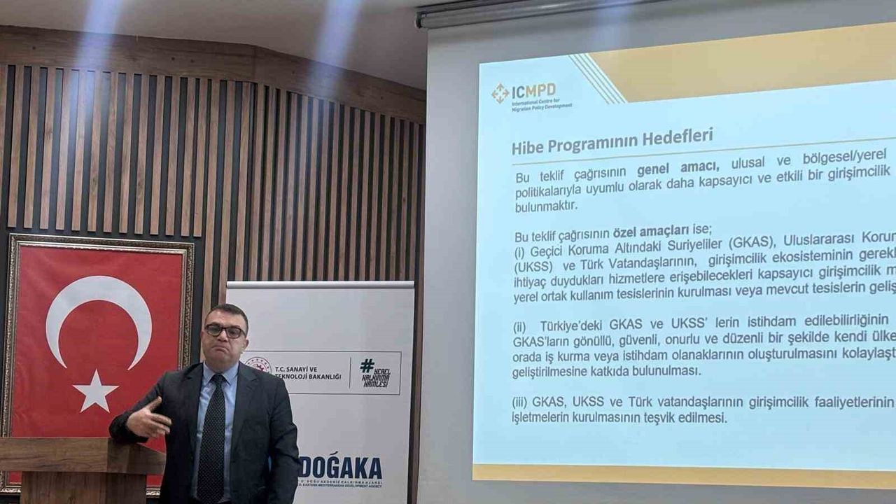 Kahramanmaraş'ta Doğu Akdeniz Kalkınma Ajansı yatırım destek ofisi ve ICMPD Türkiye temsilciliği uzmanları tarafından hibe programı bilgilendirme toplantısı gerçekleştirildi.