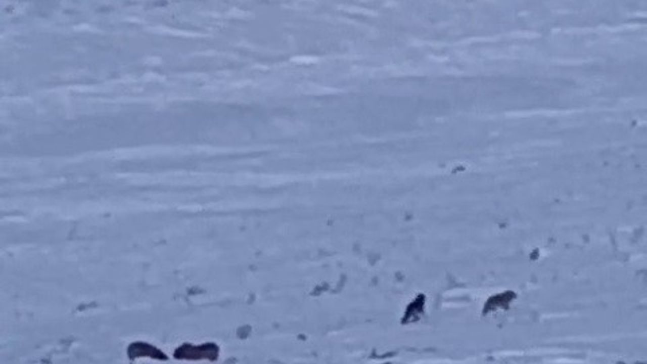 Erzurum'un Karayazı ilçesinde, gündüz saatlerinde meydana gelen olayda, aç kalan kurtlar yerleşim alanına indi.