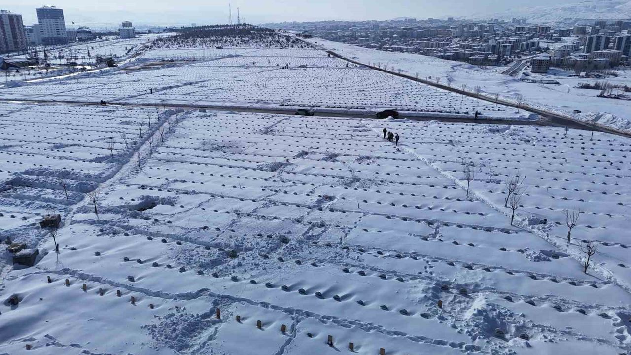 Sivas'ta günlerdir aralıklarla etkisini sürdüren yoğun kar yağışı hayatı olumsuz etkilemeye devam ediyor. Kent genelinde birçok nokta beyaz örtüyle kaplanırken, şehrin en büyük mezarlıklarından biri olan Yukarı Tekke Mezarlığı da kar altında kaldı. Yaklaşık 100 bin mezarın bulunduğu mezarlık alanı tamamen beyaza bürünürken, mezar taşları da kara gömüldü. Bazı vatandaşlar mezar taşları karlı örtüldüğü için yakınlarının mezarlarını bulmakta zorlandı.