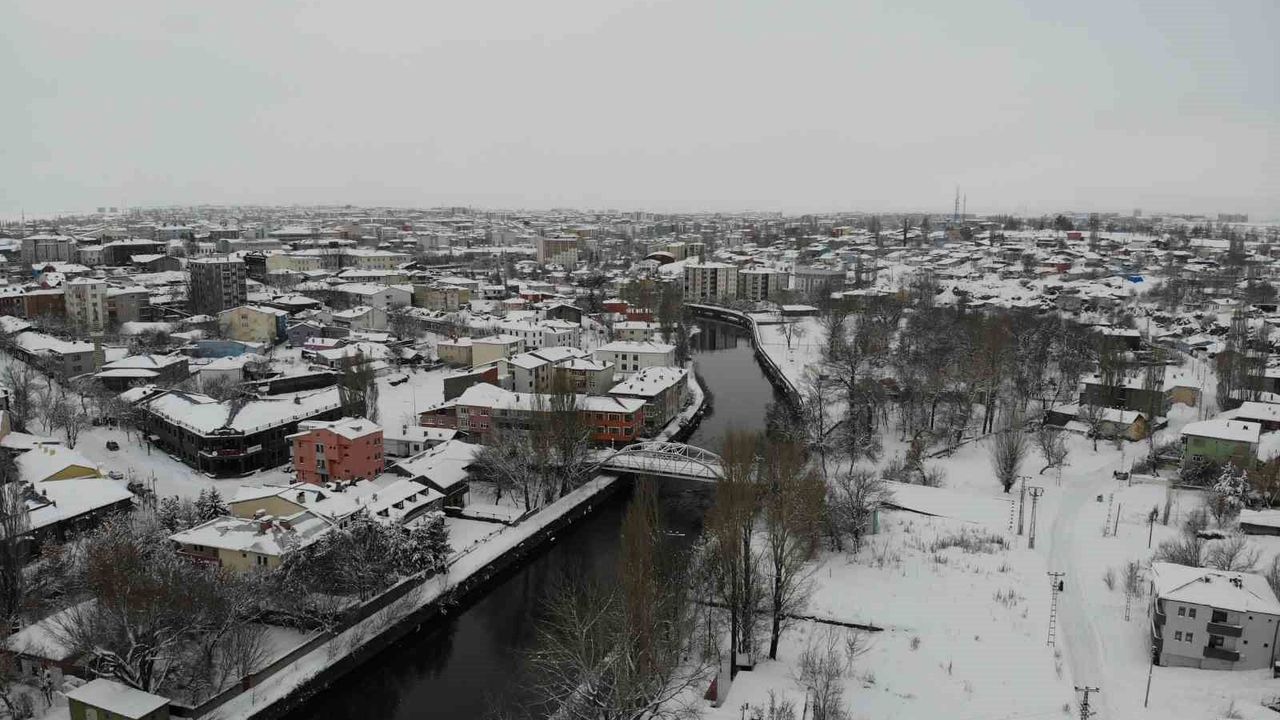 Tarihi dokusuyla bilinen Kars'ın beyaza bürünmüş hali dron kameralarına da yansıdı. Havadan çekilen görüntülerde, şehrin tamamen beyaz bir örtüyle kaplandığı, binaların çatılarının seçilemez hale geldiği görüldü. Kars Kalesi ve tarihi yapıların kar altındaki eşsiz manzarası, zorlu kış şartlarına rağmen görenleri büyüledi.