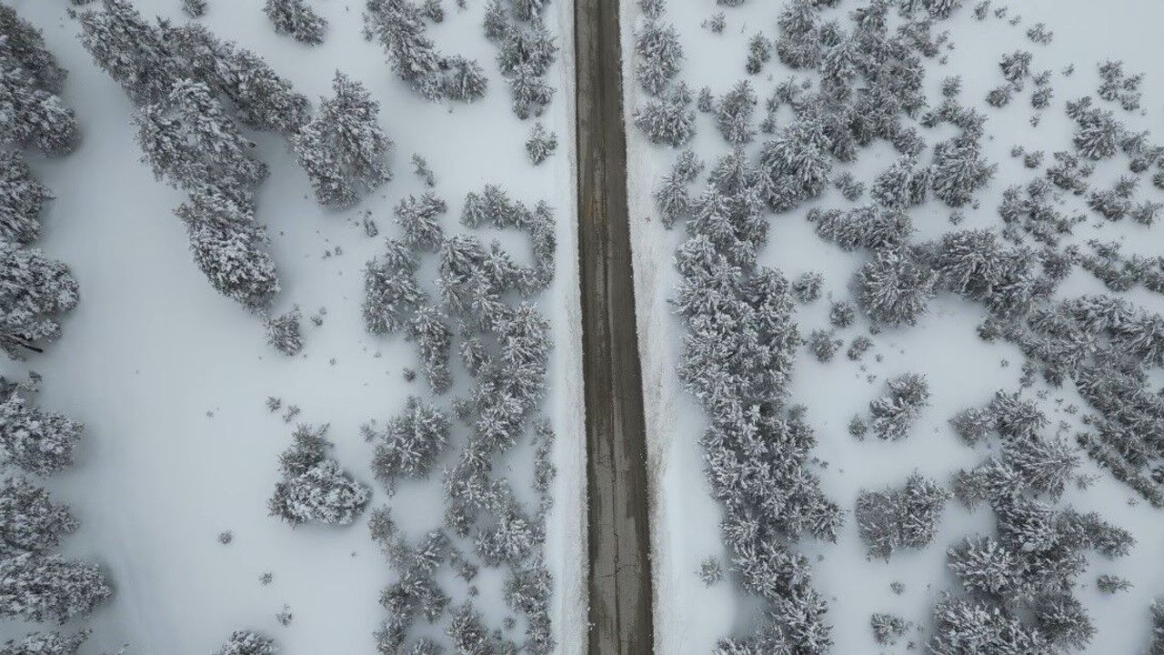 Etrafı sarıçam ormanlarıyla çevrili olan kara yolu, beyaz kar örtüsüyle birleşince doğa tutkunlarını etkileyen bir tablo ortaya çıkardı. Dron ile görüntülenen kara yolu, doğanın sadeliği ve ihtişamını aynı karede buluşturdu. Sarıçam ağaçlarının koyu yeşil tonları ile karın bembeyaz dokusu arasındaki kontrast, görsel bir şölen sundu. Bahar ayına rağmen bölgede etkisini sürdüren kar yağışı, Sarıkamış'ın kendine has iklimini bir kez daha gözler önüne serdi.