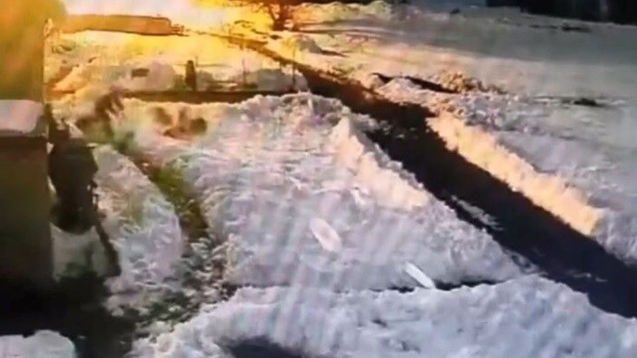 Kars'ta bir vatandaş, evinin bahçesine kadar kurt sürüsünü kürekle kovaladı. O anlar güvenlik kamerasıyla kaydedildi.