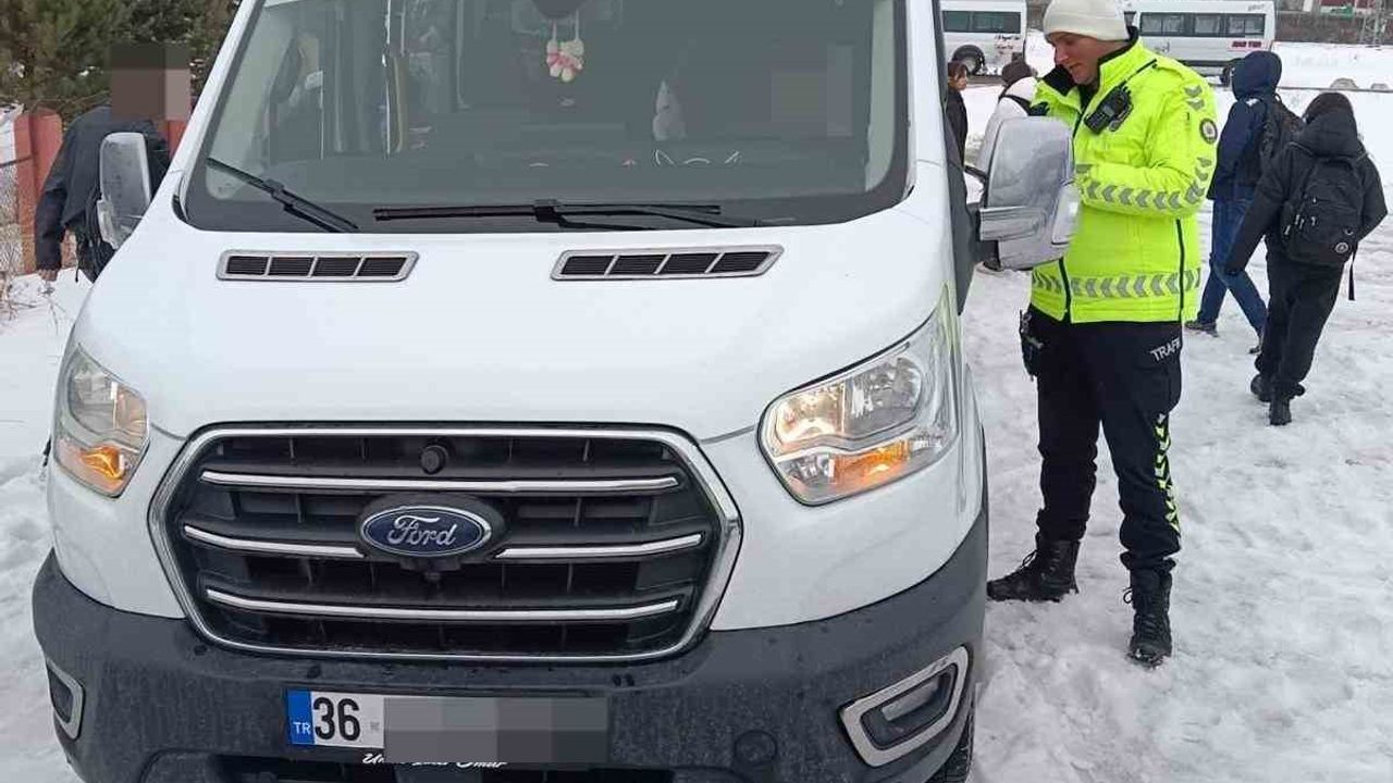Kars Emniyet Müdürlüğü'ne bağlı trafik ekiplerince kent genelinde okulların 2'inci eğitim dönemine başlaması ile birlikte okul servis araçlarına yönelik denetim gerçekleştirildi.