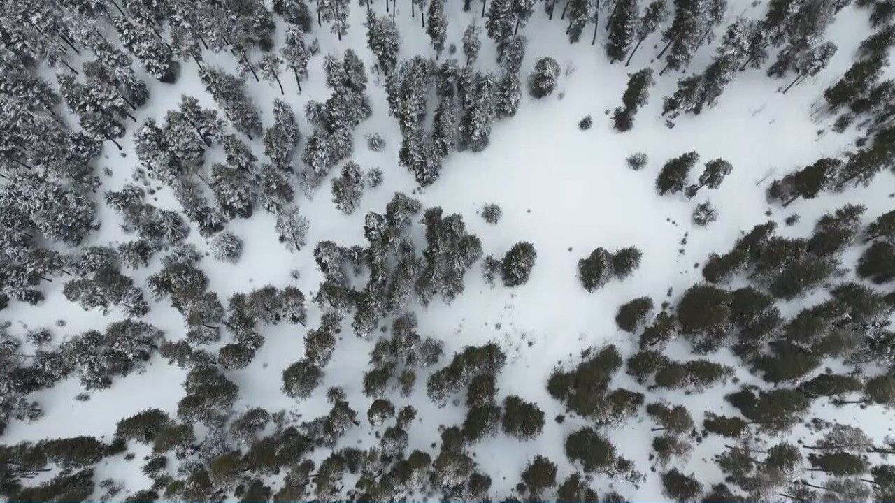 Kentte 2 gündür etkili olan yoğun kar yağışı hayatı olumsuz etkilemeye devam ediyor. Kars'ın Sarıkamış ilçesinde yer alan sarıçam ormanları, yağan karla birlikte tamamen beyaza büründü. Drone ile kaydedilen görüntülerde, ağaçların üzerini kaplayan kalın kar tabakası yer alıyor.