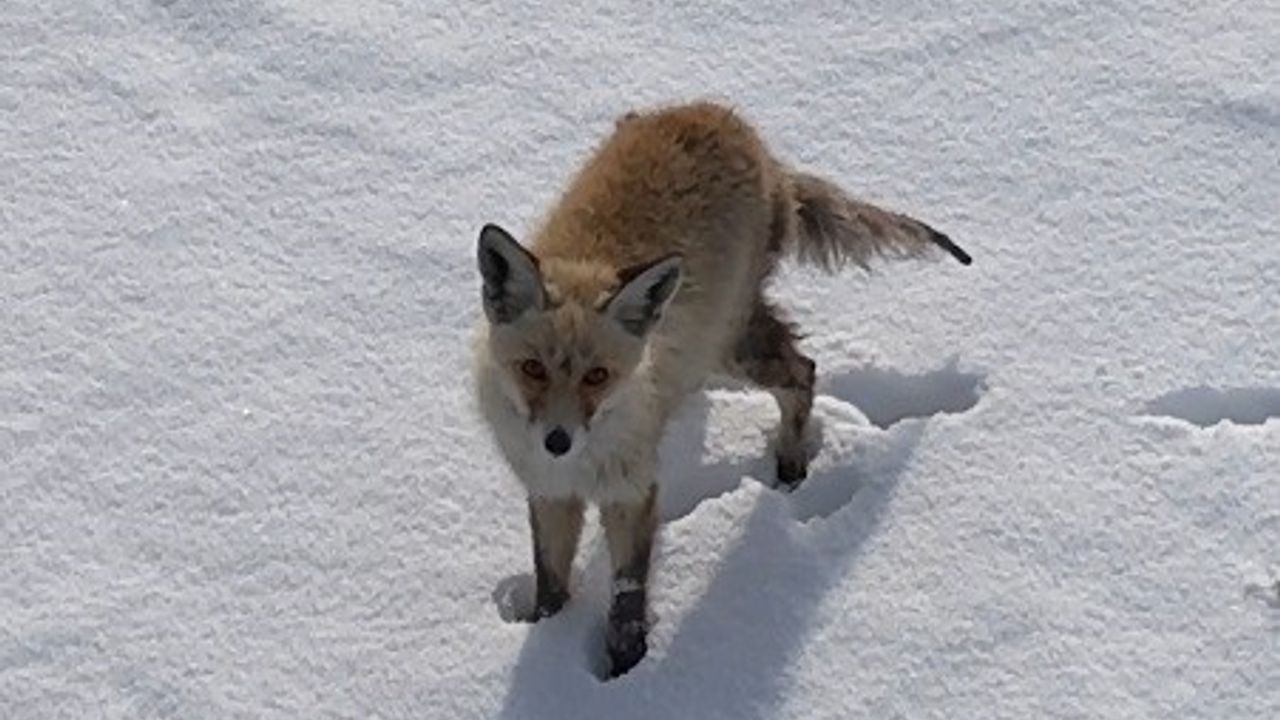 Kars'ta dondurucu soğukta yiyecek arayan tilkinin kendisini görüntüleyen dronu fark etmesiyle yaşadığı merak dolu anlar saniye saniye kaydedildi. Gökyüzündeki yabancı cismi av sanan tilkinin dronla imtihanı izleyenleri gülümsetti.