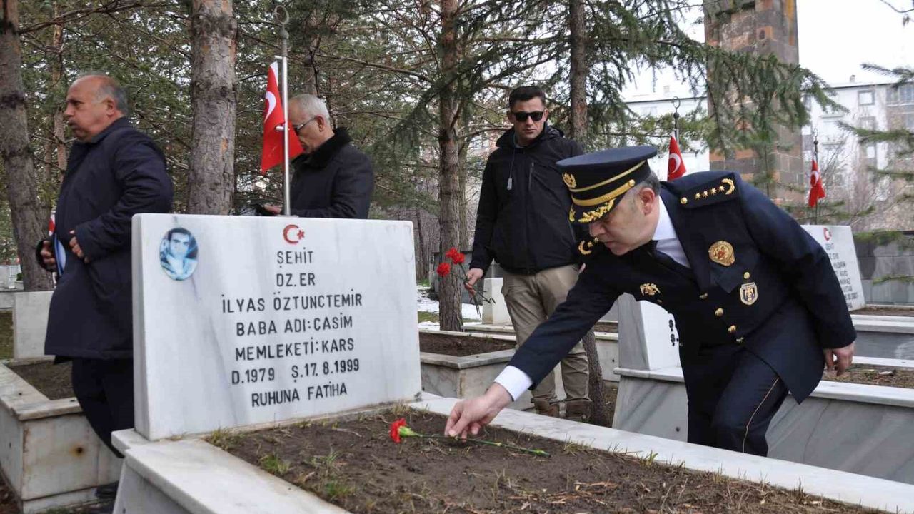 Şehitlik ziyaretine, İl Emniyet Müdürü Murat Abdullah Tombul'un yanı sıra Kars Belediye Başkanı Ötüken Senger, Azerbaycan Kars Başkonsolosu Zamin Aliyev, AK Parti İl Başkanı Muammer Sancar ve çok sayıda protokol üyesi katıldı.