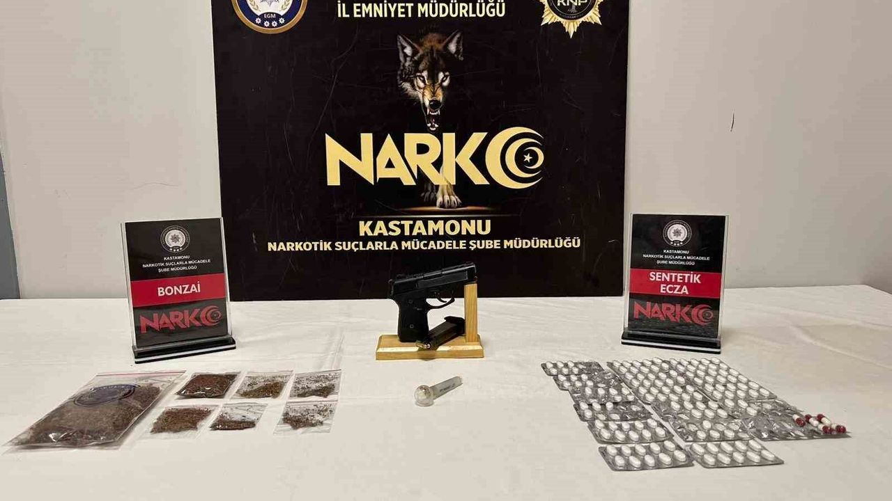 Edinilen bilgiye göre, Kastamonu İl Emniyet Müdürlüğü Narkotik Suçlarla Mücadele Şube Müdürlüğü ekiplerince, uyuşturucu madde kullanan ve satan şahıslara yönelik operasyon düzenlendi. Operasyonda yapılan aramada 46,41 gram bonzai maddesi, 125 adet sentetik ecza hapı, 1 adet uyuşturucu kullanımında kullanılan cam düzenek, 1 adet 7,65 mm çapında ruhsatsız tabanca ve tabancaya ait 1 adet şarjör ile 2 adet 7,65 mm çapında fişek ele geçirildi.