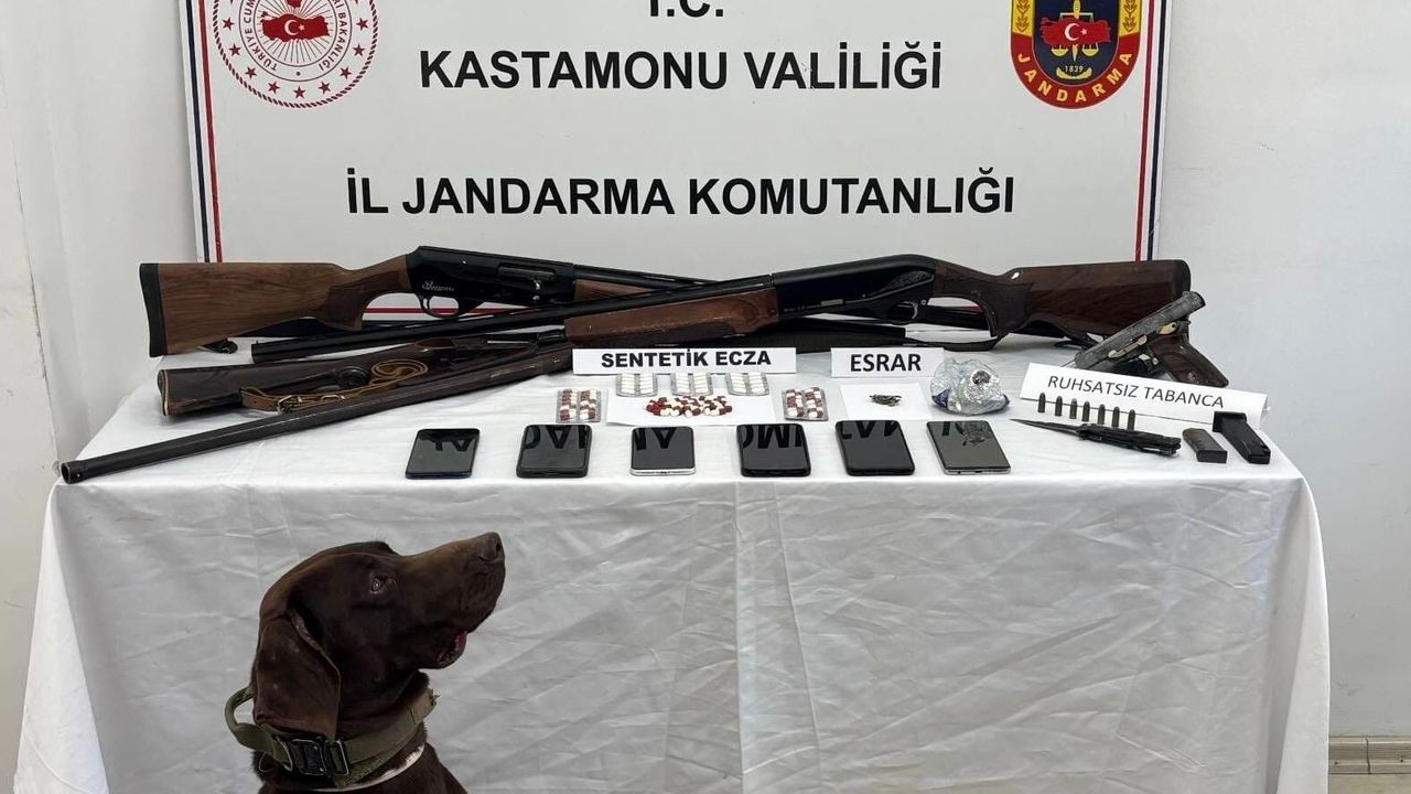 Edinilen bilgiye göre, Kastamonu İl Jandarma Komutanlığımızca uyuşturucuyla mücadeleye yönelik çalışmalar kapsamında düzenlenen operasyonda 92 adet sentetik ecza hapı, 2 gram metamfetamin, 16 mililitre sentetik kannabinoid katkılı tütün, 16 gram sentetik kannabinoid katkılı tütün, 1 gram kubar esrar, 3 adet uyuşturucu kullanma aparatı, 3 adet av tüfeği, 1 adet tabanca, 7 adet tabanca fişeği, 1 adet bıçak, 2 adet tabanca şarjörü, 6 adet cep telefonu ele geçirildi.