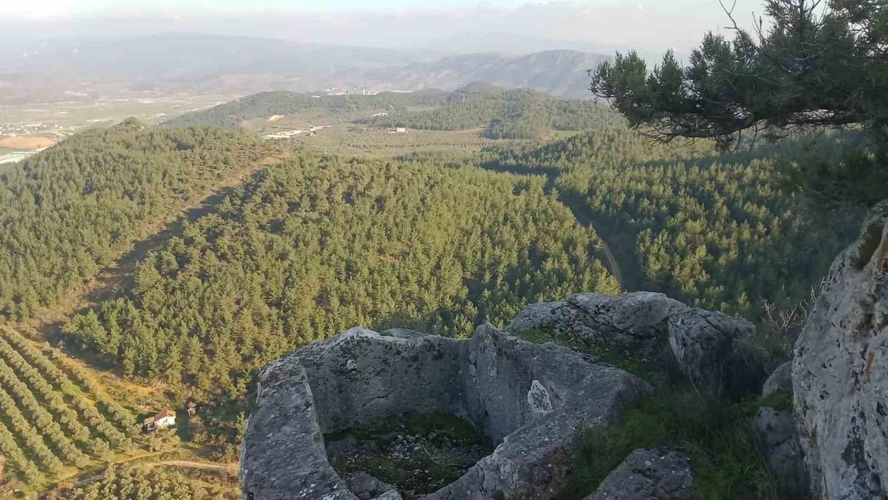Bilecik'te soylu bir aile mensubuna ait olduğu düşünülen kaya mezara defineciler tarafından zarar verildi.