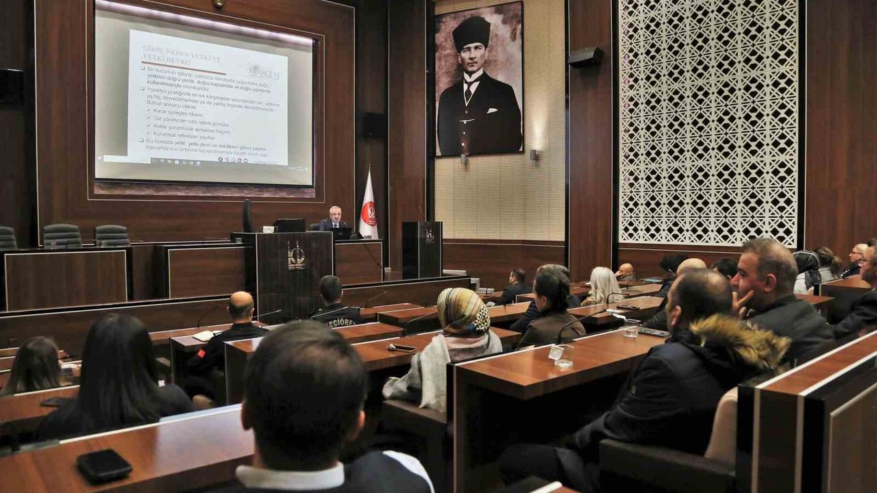 Keçiören Belediyesi tarafından, birim müdürleri ve birim sorumlularına yönelik olarak 'Disiplin Uygulamaları ve Belediyelerde Yetki Devri' konulu eğitim programı düzenlendi. Belediye Meclis Salonu'nda gerçekleştirilen eğitime, belediyenin farklı birimlerinde görev yapan yöneticiler katıldı.