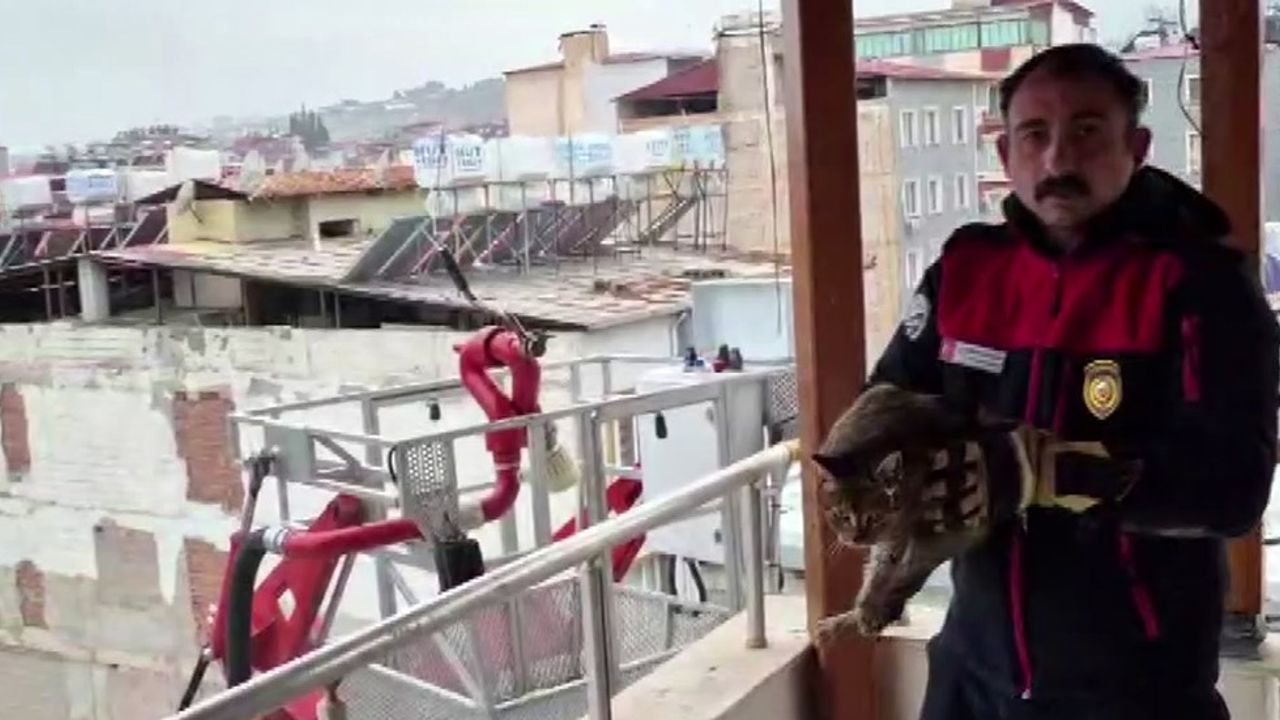 Hatay'da vatandaşlar, evlerinin tam karşısında bulunan 7.katta mahsur kalan kediyi kurtaran itfaiye ekiplerini alkışlayarak teşekkür ettiler.