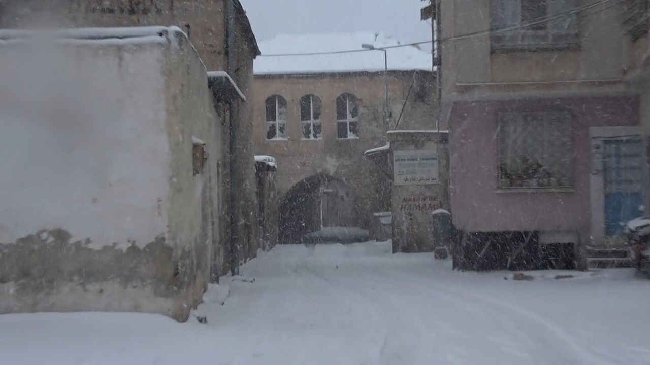Kilis'te geceden bu yana devam eden kar yağışı, şehir merkezi, sokaklar ve caddeleri beyaza bürüdü.