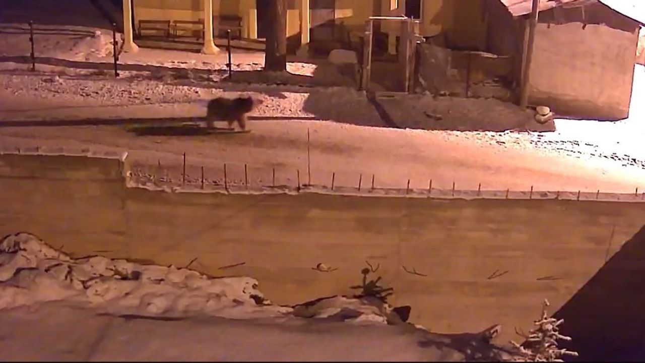 Kop köyü merkezindeki ayının yiyecek aradığı anlar, cami güvenlik kamerasına yansıdı. Görüntülerde, ayının gece saatlerinde yerleşim alanı içinde dolaştığı görüldü.