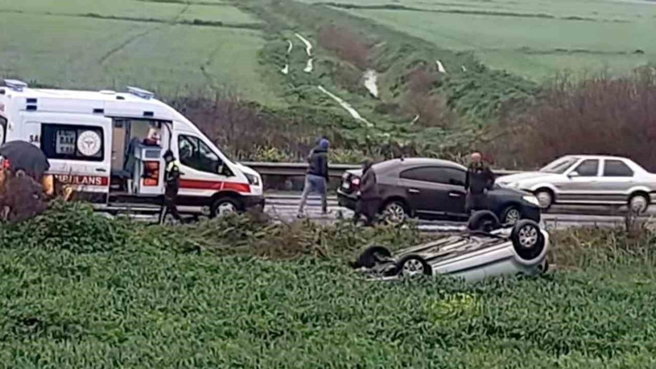 Aydın'ın Söke ilçesinde kontrolden çıkan otomobilin yoldan çıkararak ters dönmesi sonucu 1 kişi yaralandı.