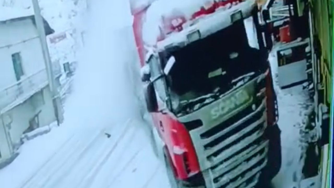 Öte yandan tırın eve çarpma anı, güvenlik kamerası tarafından görüntülendi. Görüntülerde tırın hızla gelerek evin duvarına çarptığı anlar yer aldı.
