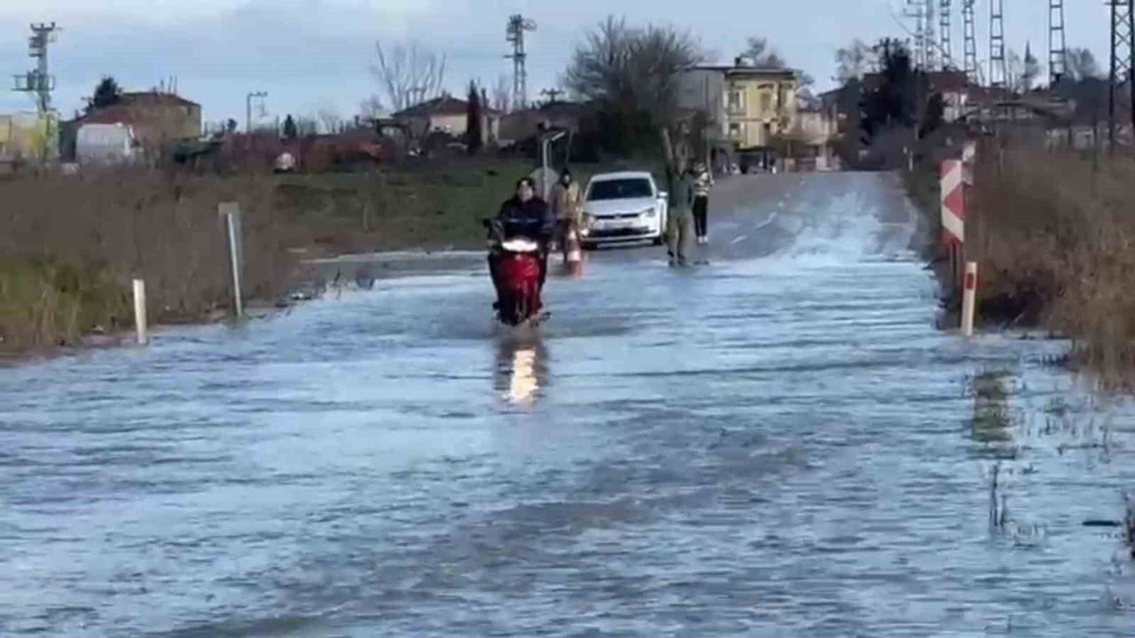 Edirne'nin Meriç ilçesinde, Meriç Nehri'nin taşması sonucu Küplü Beldesi ile Adasarhanlı arasındaki karayolu sular altında kaldı.