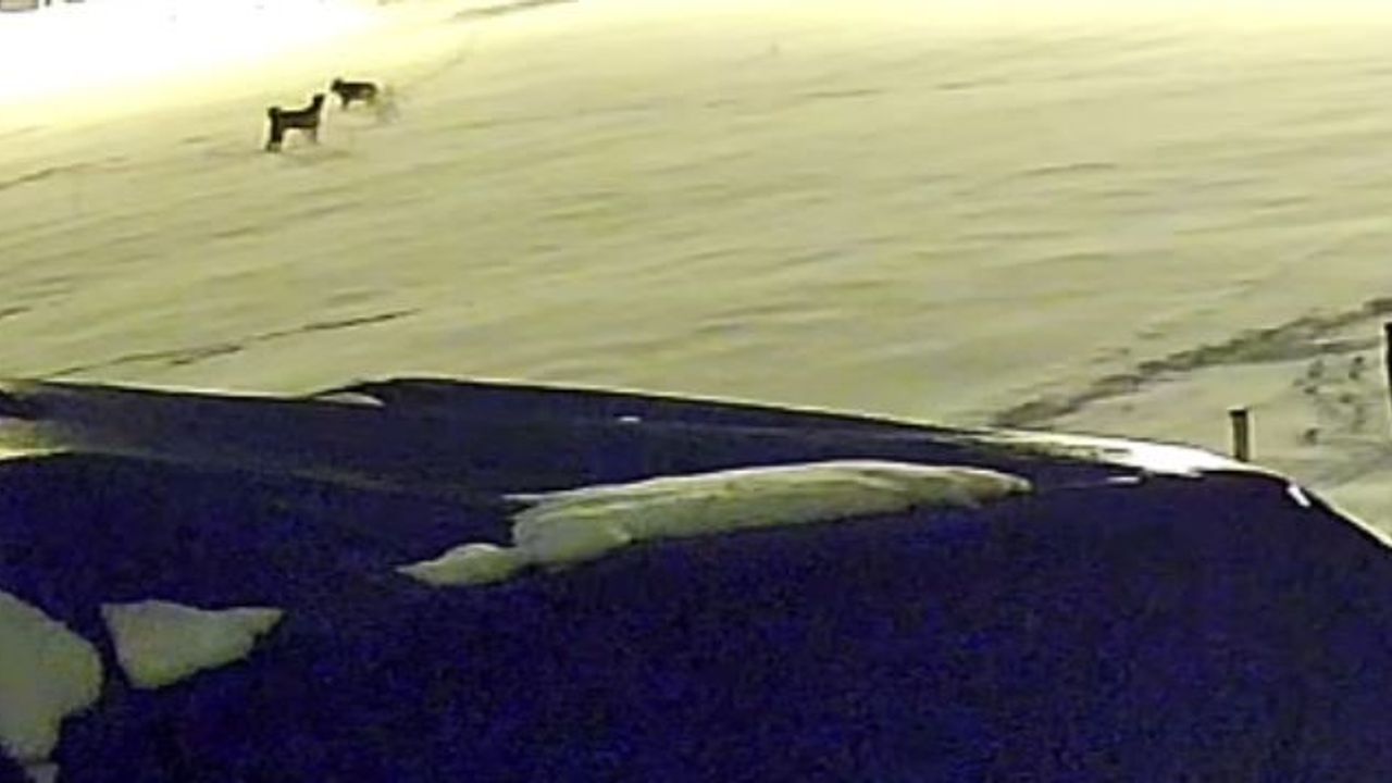 Sivas'ta aç kalan 6 kurt, bir çiftlikteki köpeğe saldırdı. Kurtların saldırdığı köpekten geriye sadece postu kaldı. Kurtların köpeğe saldırdığı anlar, güvenlik kamerasına yansıdı.