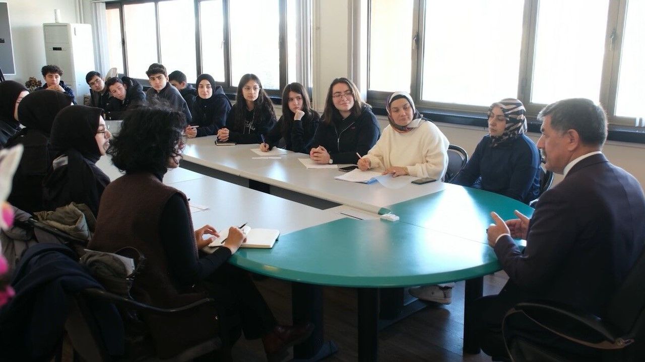 Erzincan'da lise öğrencileri, çevre bilinci ve geri dönüşüm çalışmaları hakkında bilgi almak amacıyla Belediye Başkanı Bekir Aksun'u ziyaret etti.